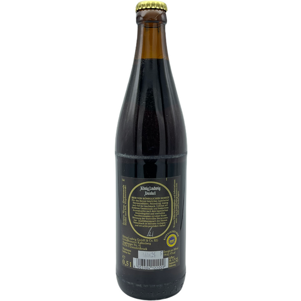 König Ludwig Dunkel is a Bavarian speciality beer brewed with naturally soft limestone water and selected raw materials from Southern Germany. It has a malty aroma with a roasted flavour note and a trace of bitter chocolate.