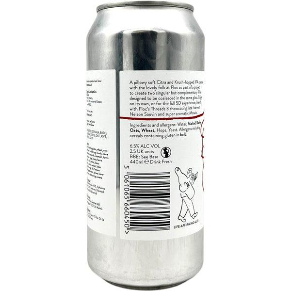 A pillowy soft Citra and Krush-hopped IPA created with the lovely folk at Floc as part of a project to create two singular but complementary IPAs designed to be coalesced in the same glass. Enjoy on its own, or for the full 5D experience, blend with Floc’s Threads 3 showcasing late-harvest Nelson Sauvin and super aromatic Mosaic.