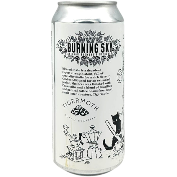 Blessed State is a decadent export strength stout, full of specialty malts for a rich flavour. Cold conditioned for an extended period. The beer was finished with Cacao nibs and a blend of Brazilian and natural coffee beans from local small batch roasters, Tigermoth.