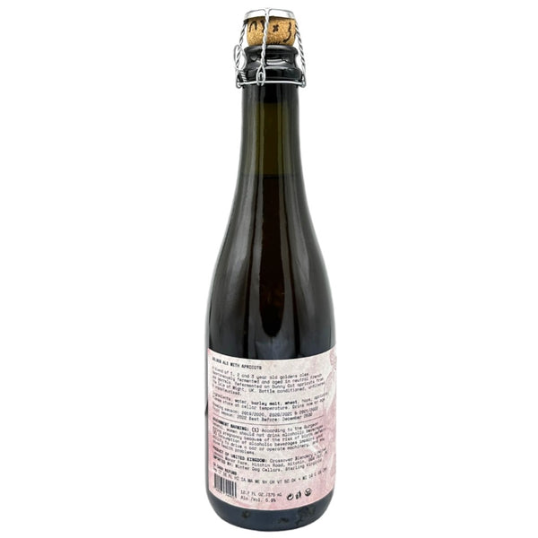 Process: A blend of 1, 2 and 3 year old golden ales brewed with malted barley and raw wheat. Spontaneously fermented and aged in neutral French oak barrels. Refermented on Lady Cot apricots grown on the Isle of Wight.