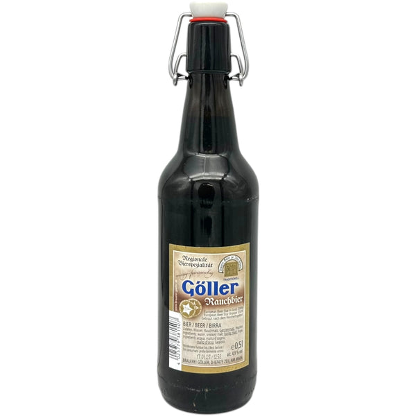 This hugely awarded, dark ruby lager is a traditional Franconian smoked-beer. It has a high but pleasant bitterness. Smoked but not overpowering, with notes of dark carmel, roasted malts, and smoked bacon. Dark but translucent, this full bodied beer pours with a thick and creamy, off-white head.
