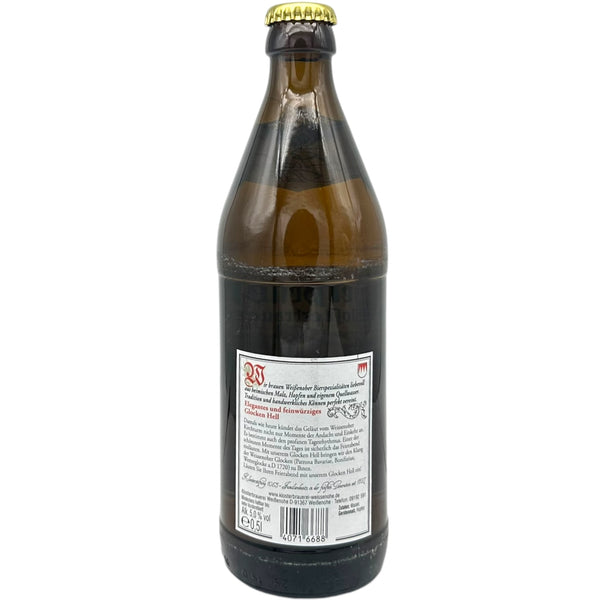 Our Glockenhell is a classic “hell” as it should be. A high degree of fermentation and appropriate mashing as well as the Hersbruck hops result in a harmonious balance of malt aroma and fine hop bitterness with a pleasantly tangy taste. With fresh spring water, Franconian malt and hops from the “Hersbrucker Mountains” growing region.