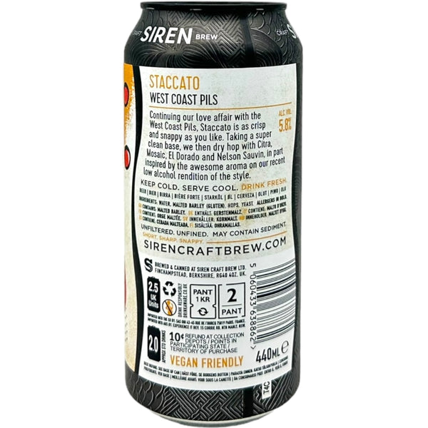 Continuing our love affair with the West Coast Pils, Staccato is as crisp and snappy as you like. Taking a super clean base, we then dry hop with Citra, Mosaic, El Dorado and Nelson Sauvin, in part inspired by the awesome aroma on our recent low alchol rendition of the style.