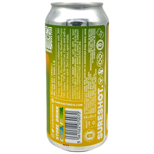 A hazy pale ale brewed in collaboration with 360 Degrees Brewing. Dry hopped with Southern Cross T90, Galaxy T90 & Simcoe Cryo. Citrus zest with a piney bitterness relish. Don’t dead, open inside.