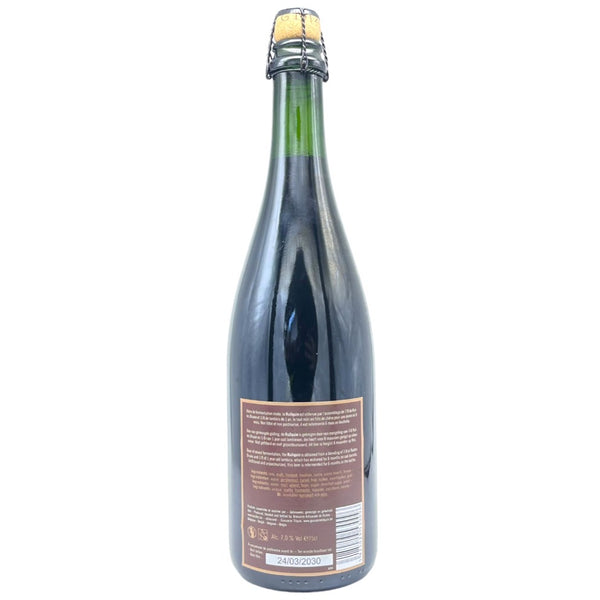 Beer of mixed fermentation, the Stout Rullquin is obtained from a blending of 7/8 of Rulles Brune (Stout de Gaume) and 1/8 of a blend of 1 year old lambics, which has matured for 8 months on oak barrels. Unfiltered and unpasteurized, this beer is refermented for 6 months in the bottle.