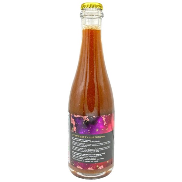Introducing Strawberry Supernova; a piece of Vault City history brewed in celebration of our 5th birthday. A mighty explosion of flavours against glittering, star-studded skies. Imagine all the mouth-watering flavours of juicy strawberries and cream from our original Skies series dialled up to 10.5%, now in a clear bottle showcasing the addition of sparkling gold glitter.